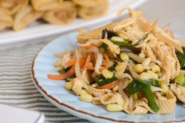 春餅最完美的搭檔要數(shù)炒合菜(用韭菜、雞蛋、粉絲、豆芽炒在一起的一道菜肴)。