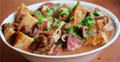 麻豆腐:豆渣發(fā)酵后,用韭菜、黃豆、羊肉等炒出來,澆上辣椒油,酸、復(fù)合辣、韭菜香、羊肉香,真是好吃,一點(diǎn)兒不膩。這道菜我非常推薦,雖然名氣不大。