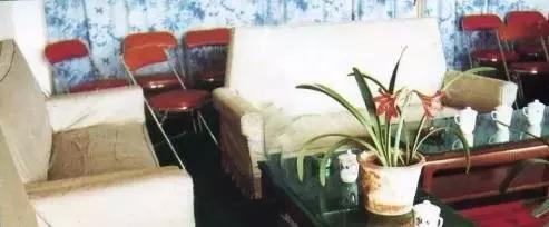 這里應該是這家旅社的一個會議室。那個年代的沙發(fā)、金屬折疊椅,傳統(tǒng)的茶幾上的水杯煙灰缸,還有君子蘭的花盆。充滿著那個年代會議室的特色。