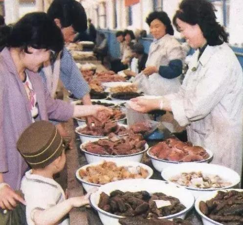 當年北行農(nóng)貿(mào)市場賣熟食的攤位,攤位前那個小朋友戴著的帽子應該是那個年代孩子們比較時髦的物件。