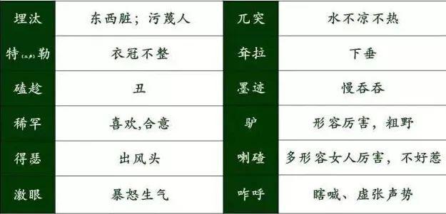 接下來是形容詞!在我們這旮沓,臟叫埋汰,丑叫磕磣,喜歡叫稀罕,生氣叫激眼,磨蹭叫墨跡!
