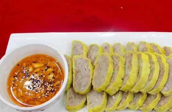 封丘卷尖味香清爽利口,油而不膩,切片,切蔥絲放上去,放入調料,味精、豆腐乳等,上蒸籠蒸熟炸至金黃色即可