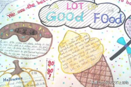 6、最后,在畫畫的留白里畫上美食或者其他圖案,可以自己動手畫畫,也可以請畫的好的小伙伴幫忙。這樣一份美食手抄報就完成了,是不是沒那么難呢?