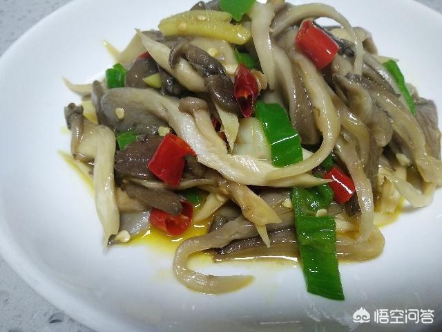 3、放入青紅辣椒碎已經(jīng)少許鹽調(diào)味,繼續(xù)翻炒,直到平菇的湯汁沒有了即可。