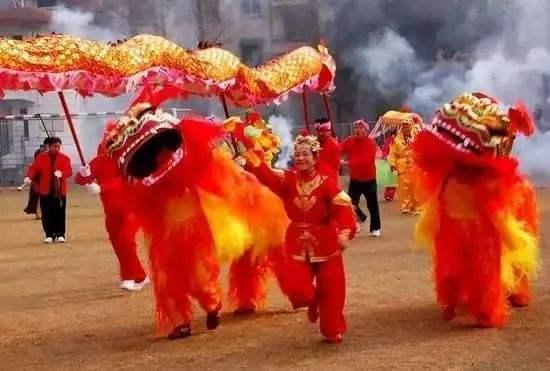 不知什么時(shí)候,人們忽然喧嚷開來,并紛紛讓出一道:哦!原來是舞龍(也稱玩龍燈)大戲從街上隆重入場表演了!紅色的紙龍,扎得惟妙惟肖,一精壯者手持棍上繡球舞動(dòng),吸引龍頭,其意欲奪龍嘴寶珠。一干小伙子赤膊上陣,撐起龍身,上下左太起伏搖動(dòng);扛龍頭自然是好把式,而據(jù)說關(guān)鍵在于擺龍尾的才是老大:他指揮著龍身的騰挪、位置變動(dòng),與龍頭渾然一體,銜接成完美而靈動(dòng)的活龍。