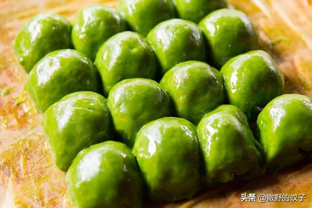 “古人寒食采楊桐葉,染飯青色以祭,資陽氣也,今變而為青白團(tuán)子,乃此義也”。人們采用青艾與糯米粉一起搗制,再配以豆沙等為餡蒸制而成。舊時(shí),這種食品多用于掃墓祭祖,隨著時(shí)代的變遷,食材也經(jīng)過了逐步改良,慢慢成為了一種春季嘗新的時(shí)令小吃。