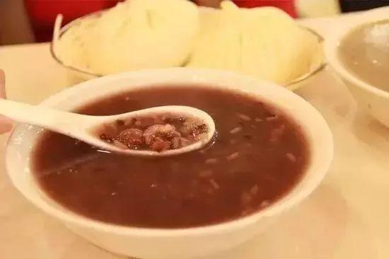 色澤鮮紅的八寶粥有八種以上的配料,豆子軟爛、米香濃郁。早餐來一碗,胃里最舒服!