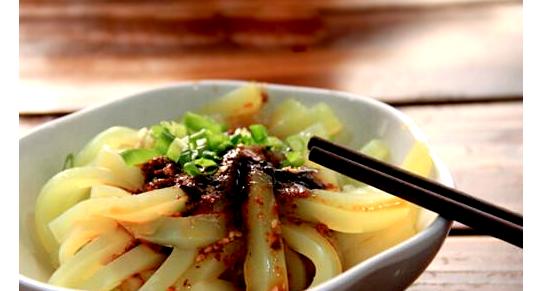 綿陽(yáng)著名小吃之一的席涼粉,成品涼粉晶瑩剔透,調(diào)料紅色亮油,蔥花翠綠,在視覺(jué)上就讓人食欲大開(kāi),口感滑嫩爽口、清香微辣,不愧為享譽(yù)大半個(gè)世紀(jì)的名小吃