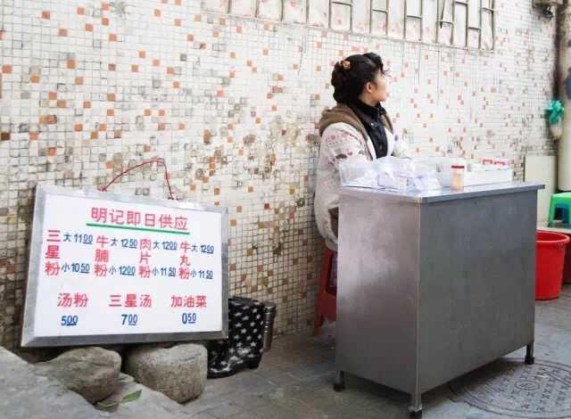 就是“津津面館”旁邊的小巷,就藏著一間出名的小店,又是一間沒有招牌的店。要不是地膽帶路,恐怕會找不著,但是就是這樣一間小店,生意去出其的好,全天幾乎都是食客滿座。這間小店以前旁邊是一個公廁,廣州人稱廁所為“屎坑”,所以取了“屎坑粉”這個名字。大名鼎鼎的屎坑粉,你可千萬別被名字嚇沒了胃口,公廁早已拆除,余下的只有熱鬧的食客與彌漫的粉香。
