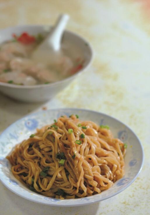 散發(fā)著豬油、花生醬香味的拌面,與輕盈漂浮于清湯里的扁肉,可以算是福州小食里最經(jīng)典的“情侶套餐”,在一天的任何時(shí)段都可以吃上這么一小頓。